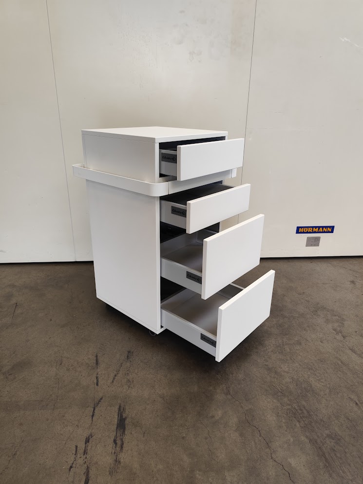 multifunctionele apparatenwagen // tip-on-lades // rondomlopende handgreep in wit // hoogwaardige wielen.