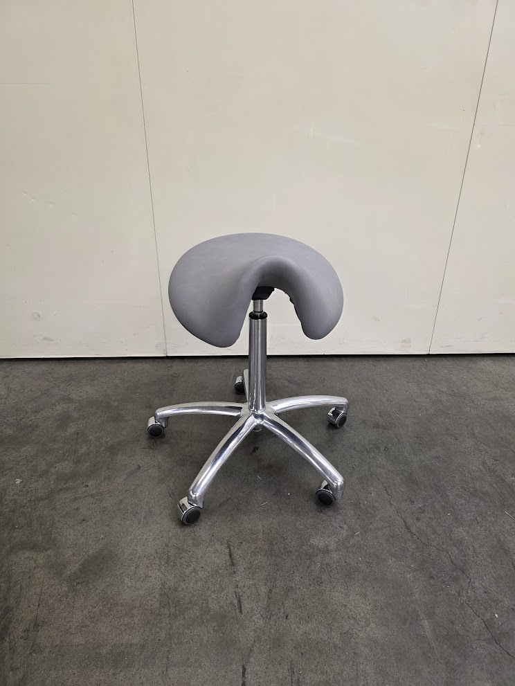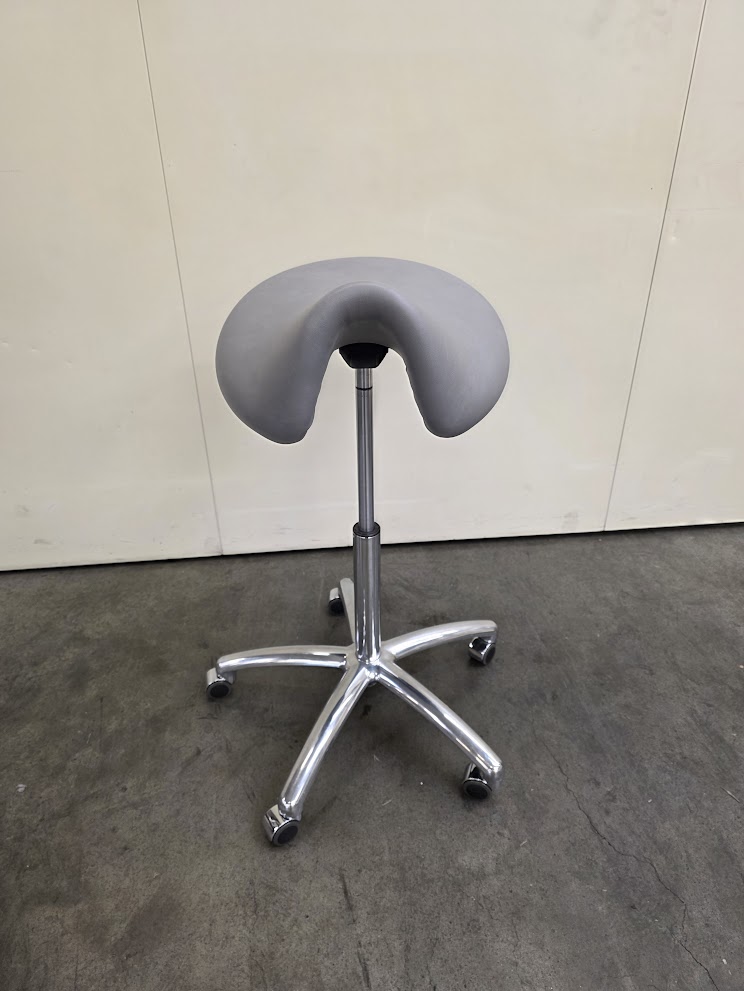 met extra brede zitting // pneumatische hoogteverstelling, 59-80 cm // draaibare zadelzitting // veiligheidsvoet met 5 wielen // rubberen wielen met rolstopfunctie // comfortabele bekleding // afwasbare en slijtvaste bekleding