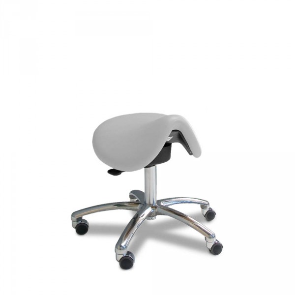 meebewegende zitting die zich aanpast aan de beweging // Met zachte Floating // pneumatische hoogteverstelling, 47-63 cm // draaibare zadelzitting // 5-wielige veiligheidsvoet // rubberen wieltjes met rolstopfunctie // slijtvaste bekleding // kunstleren bekleding in wit